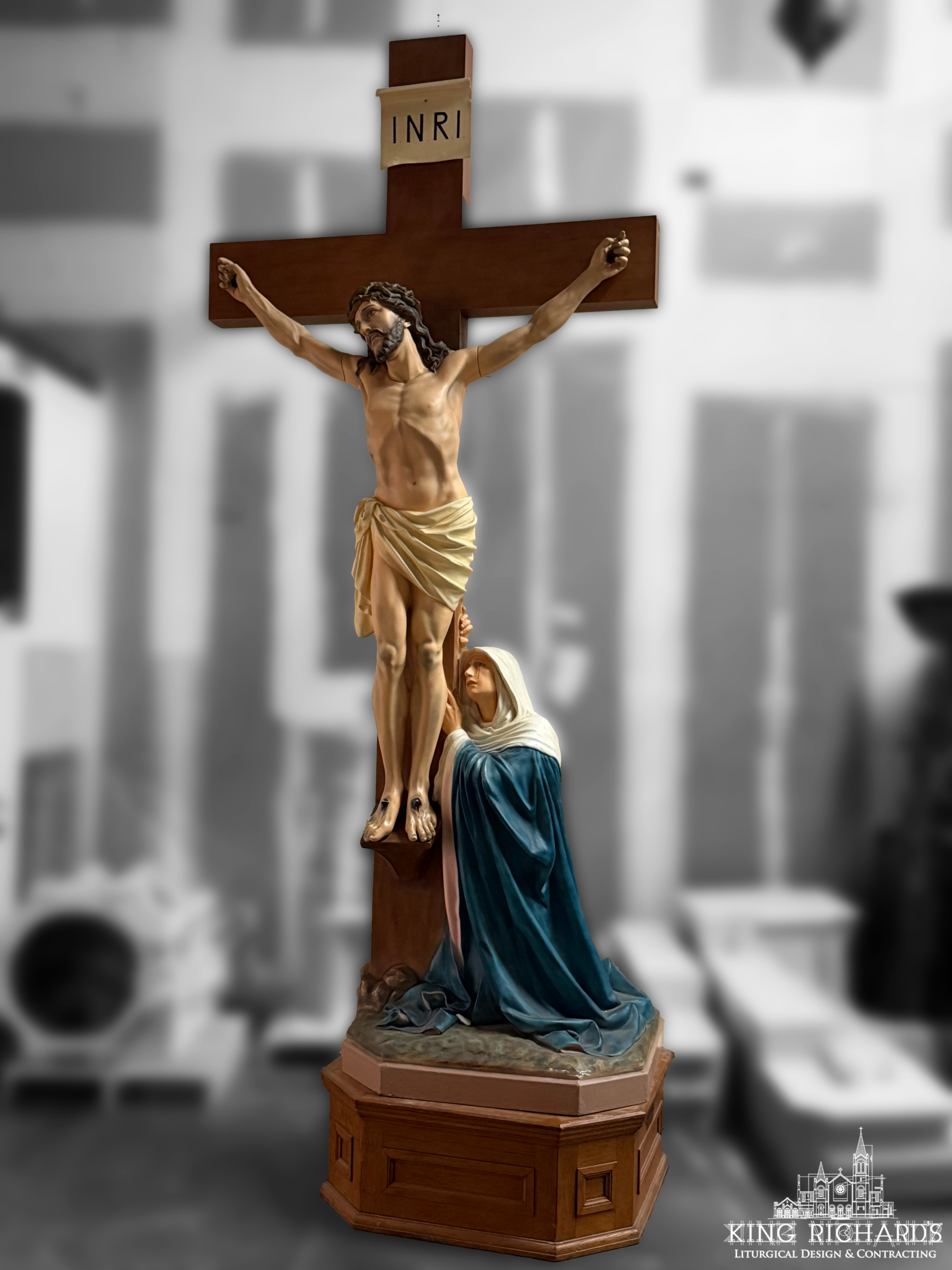 Antique Crucifix with Mary Statue
