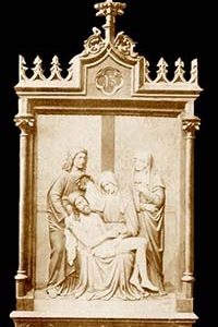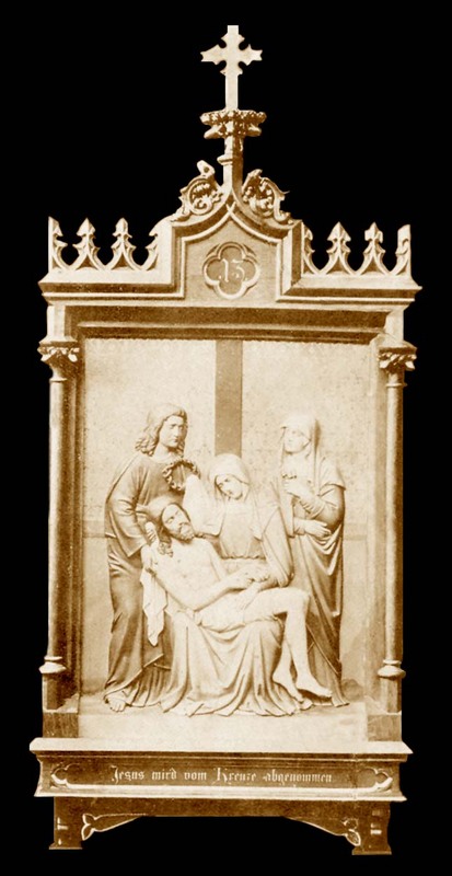 KRSTA-512:Â New Hand Carved Wood Gothic Style Stations of the Cross. Dimensions: Available in sizes 3, 4, 5, 6, or 8 feet in height. All King Richard’s furniture is hand crafted to order utilizing the finest quality materials and techniques. Our products are not mass produced in a large factory or imported. Customer chooses the finish, styles, sizes, materials and any other alterations to suit your needs. Quartered oak, walnut or mahogany available for an additional cost. The sizes listed are standard, but can be modified to a reasonable degree if desired. Gold leaf trim details can be supplied at an additonal cost. Letters can be carved into the wood at a cost of $30.00 per letter.