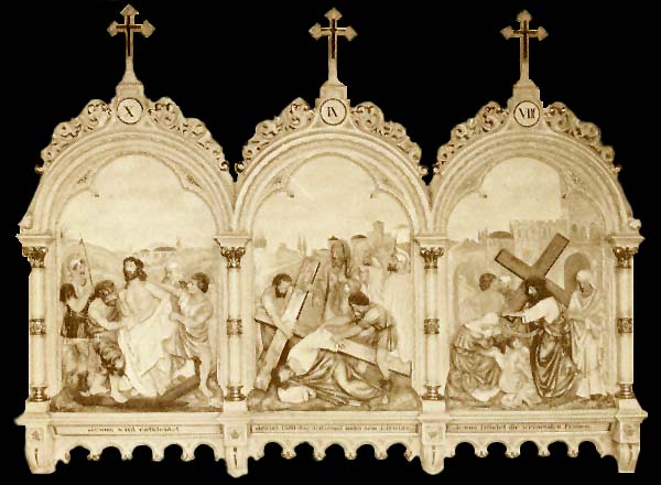 KRSTA-271-New hand carved wood stations of the cross. Stations are carved in high relief with finish and size to your specifications.
