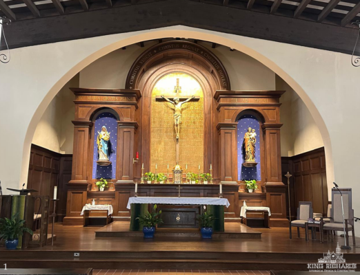 St. Rose of Lima Catholic Church underwent a full sanctuary renovation in partnership with King Richard’s Liturgical Design and Contracting. The project introduced a wide range of newly crafted liturgical elements, including altar rails with gates, a wooden reredos, an altar panel for the Altar or Sacrifice, a granite baptismal font, three statues, and custom [...]